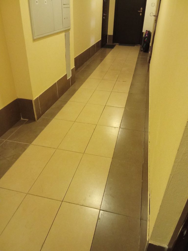 ✅ пр-т Мельникова 19, под. 1, эт. 10: перекладка отслоившегося участка облицовки пола в холле;