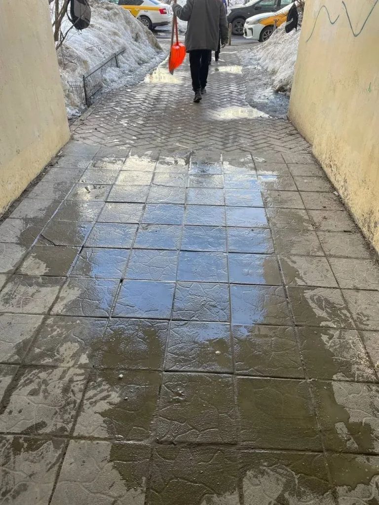ул. Молодёжная 64: перекладка 20 кв. м поврежденной тротуарной в проходной арке.