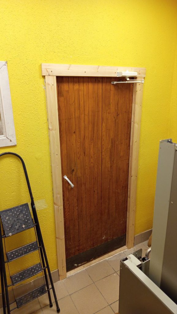 ✅  ул. Молодёжная, 76, под. 1: изготовление и установка нового дверного короба и дверного доводчика тамбурного дверного блока; локальный ремонт МОП на 1 этаже;