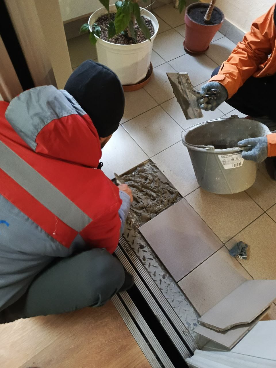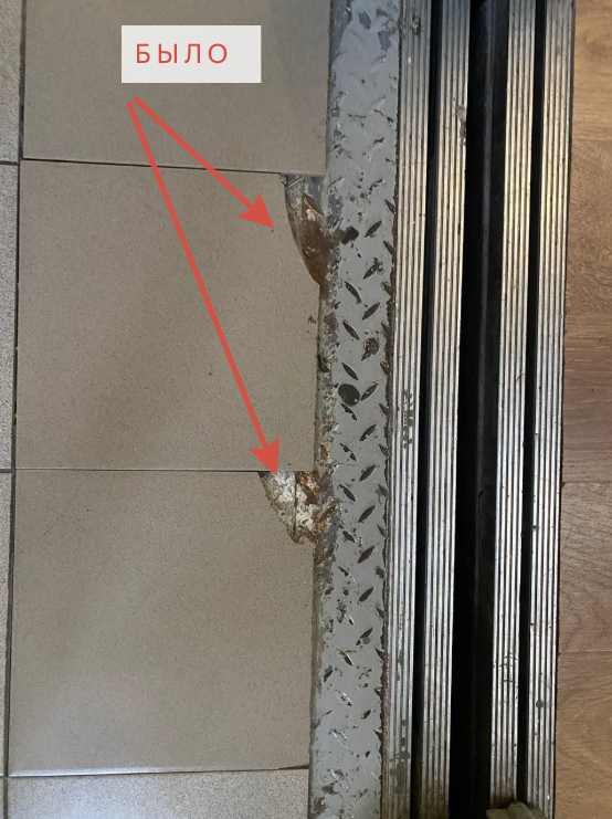 ✅ ул. Молодежная, д. 54 (под. 4), д. 50 (под. 3): замена поврежденных элементов облицовки пола перед лифтами;