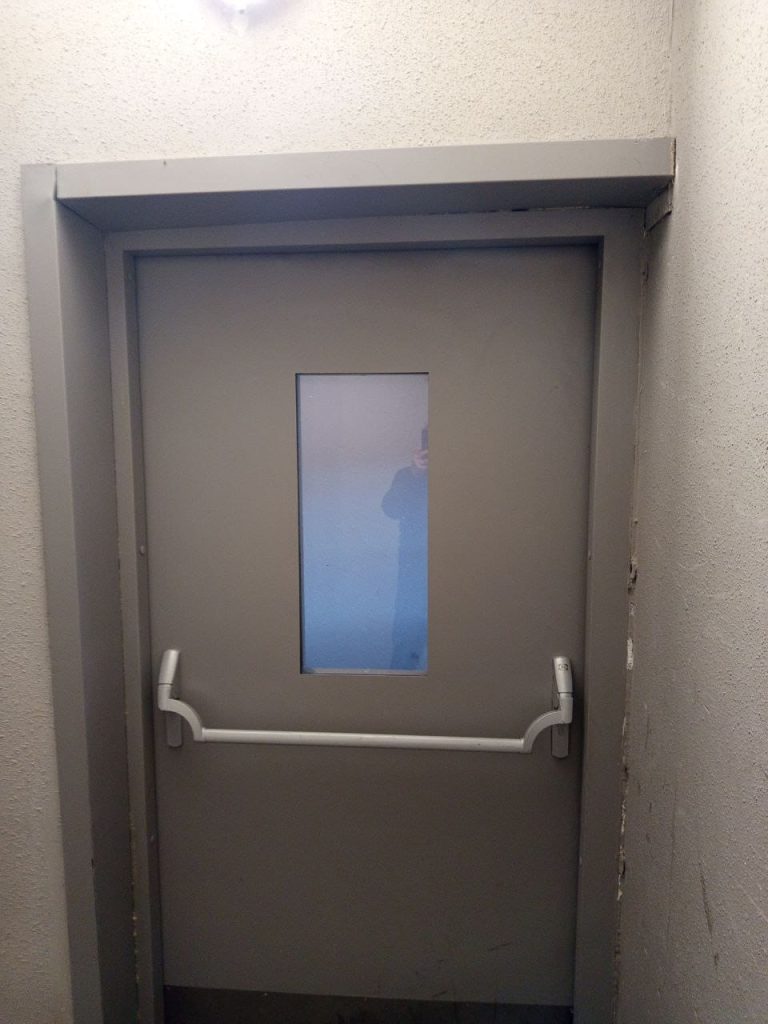 ✅ пр-т Мельникова, д. 5/2: ремонт откоса дверного блока эвакуационного выхода.